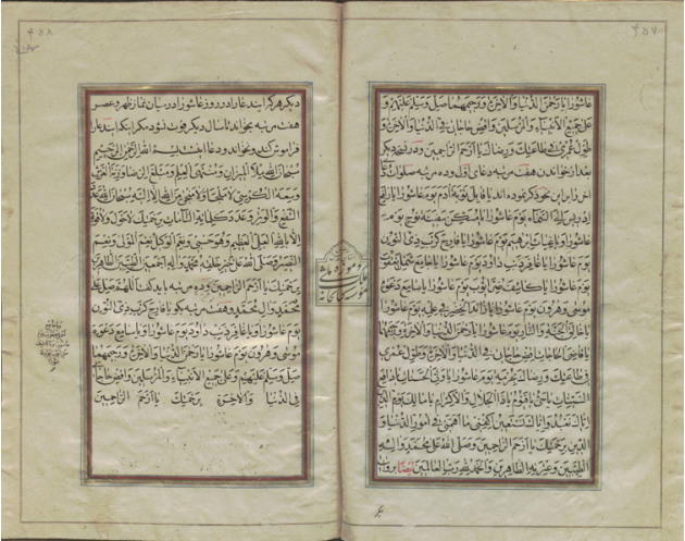 نسخ سدهٔ ۱۳ق، صفحات آغازین مذهّب مرصّع و بین سطور طلااندازی شدهٔ مضرّس، تمام صفحات مجدول و کمنداندازی شدهٔ محرّر، عناوین به شنگرف، سرفصل ها کتیبهٔ بازوبندی لاجورد اندود و شنگرف اندود که به زر تحریر شده، ۲۳۰ برگ ۱۷ سطری به ابعاد ۲۱/۵.۱۳/۶ سانتیمتر، کاغذ ترمه قطع ربعی، جلد روغنی با نقش گل و بوته و آستر بوم سرخ حل کاری با ترنج و سرترنج منقوش.