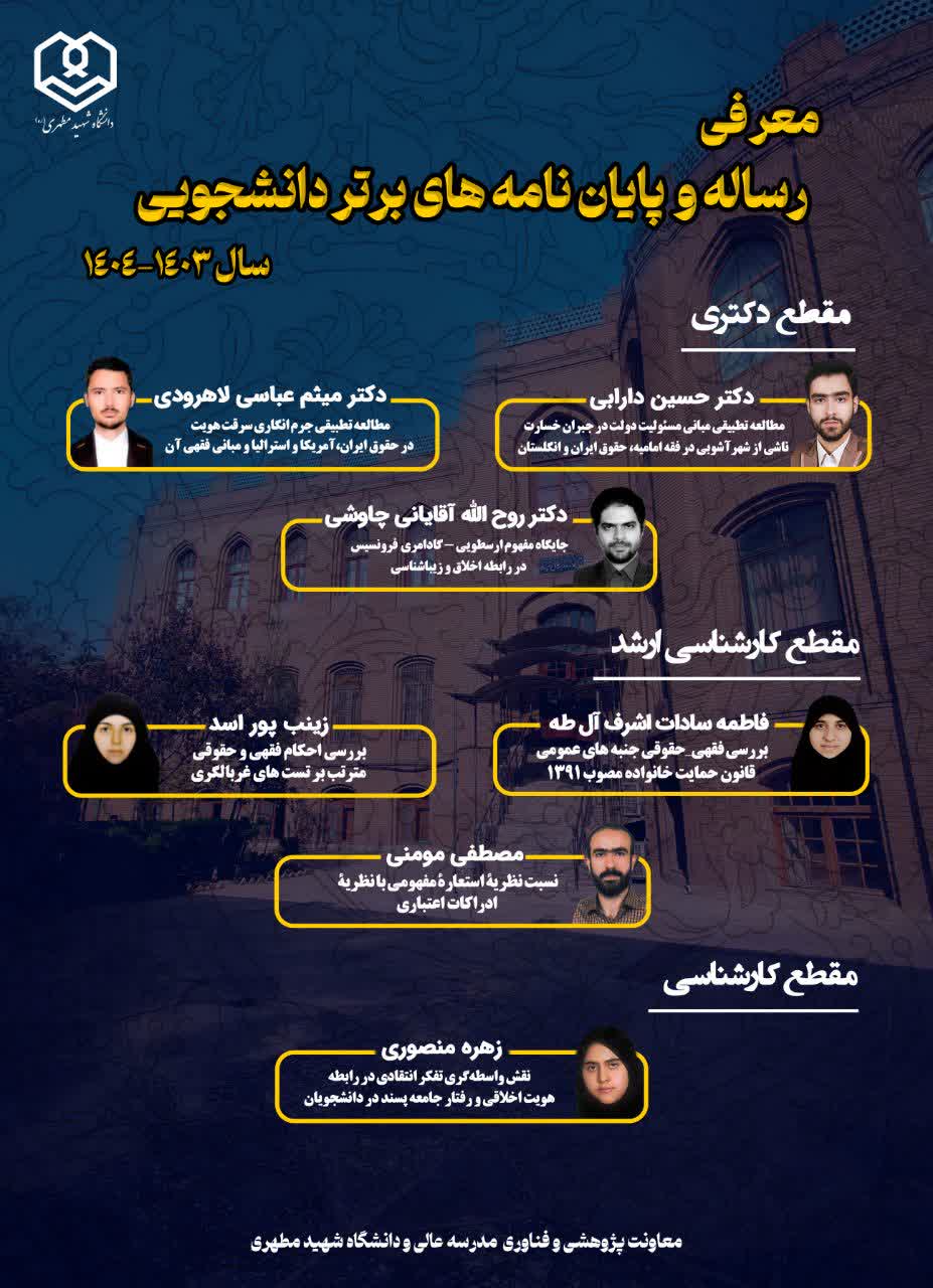 معرفی رسالهها و پایاننامههای برتر دانشجویی سال تحصیلی ۱۴۰۴-۱۴۰۳